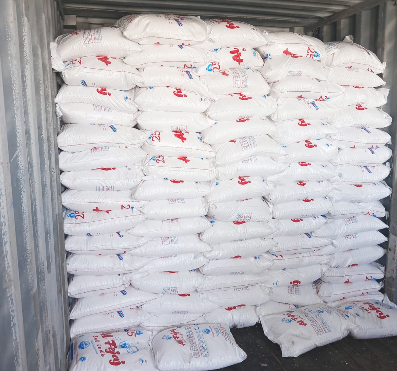 • ✔️ 20′ Conteneur FCL = 27,5 Tonnes / 1100 Sacs de Sel Grossier Raffiné Al Fejaj