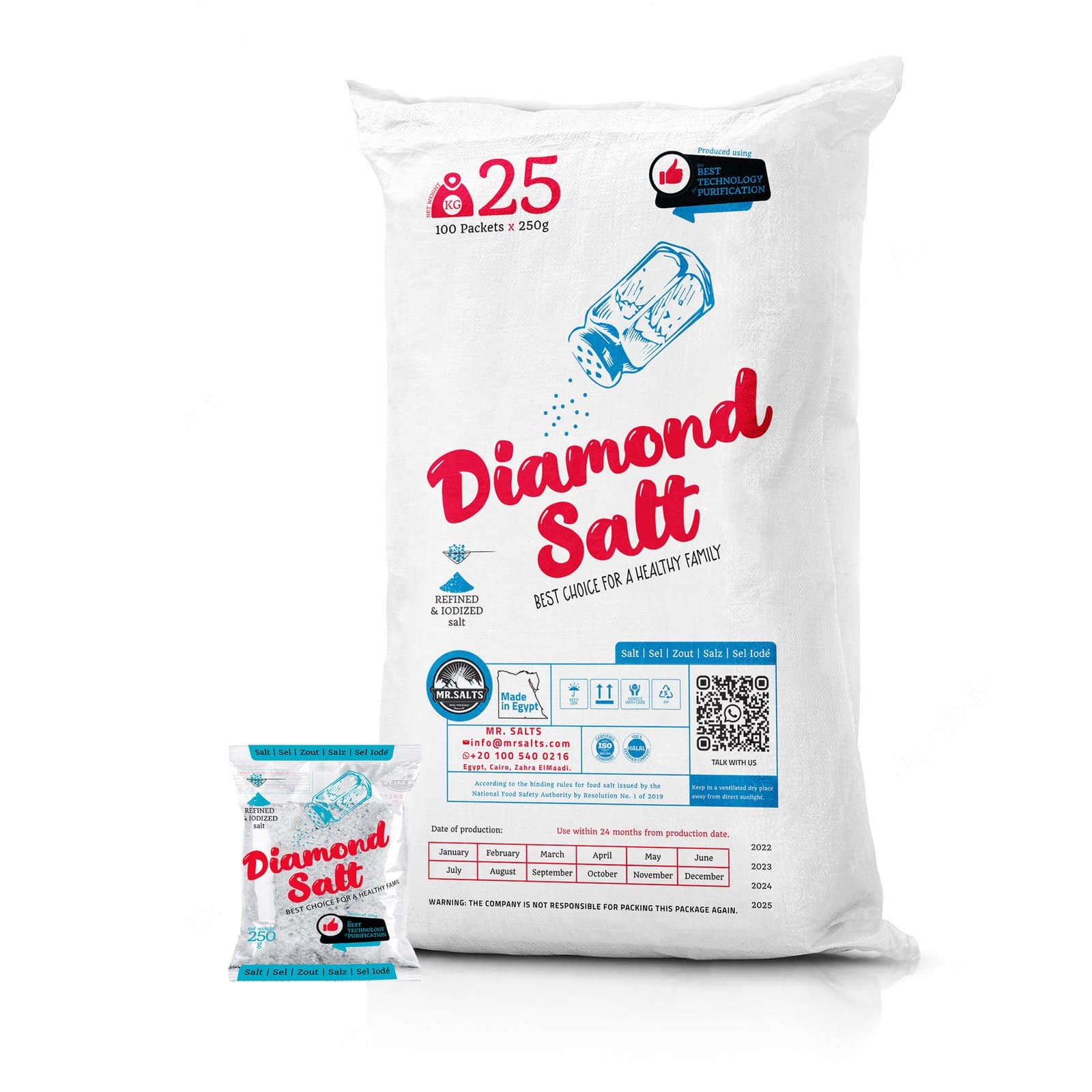 Diamond Salt 250g is the high-purity solution for the cost-conscious retail consumer. As one of our most popular small-format products, it delivers the same “diamond-clear” refined crystals as our larger sizes, but in a 250g pouch designed for maximum shelf-turnover and entry-level pricing. It is the perfect marriage of Egyptian salt heritage and modern retail convenience.