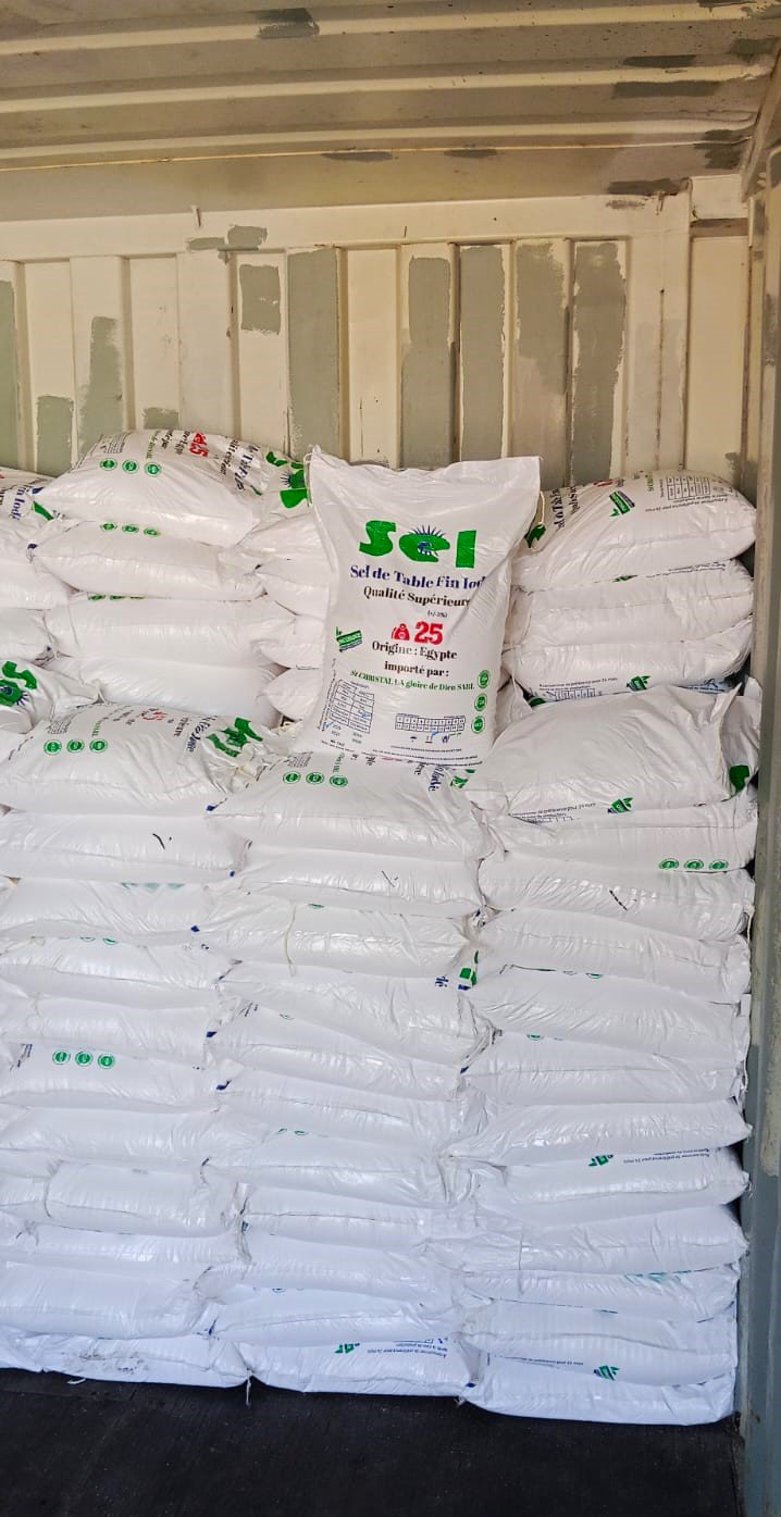 • ✔️ 20′ Container FCL = 27.5 Tons / 1100 Bags of Refined Table Salt (Export Quality from Egypt).