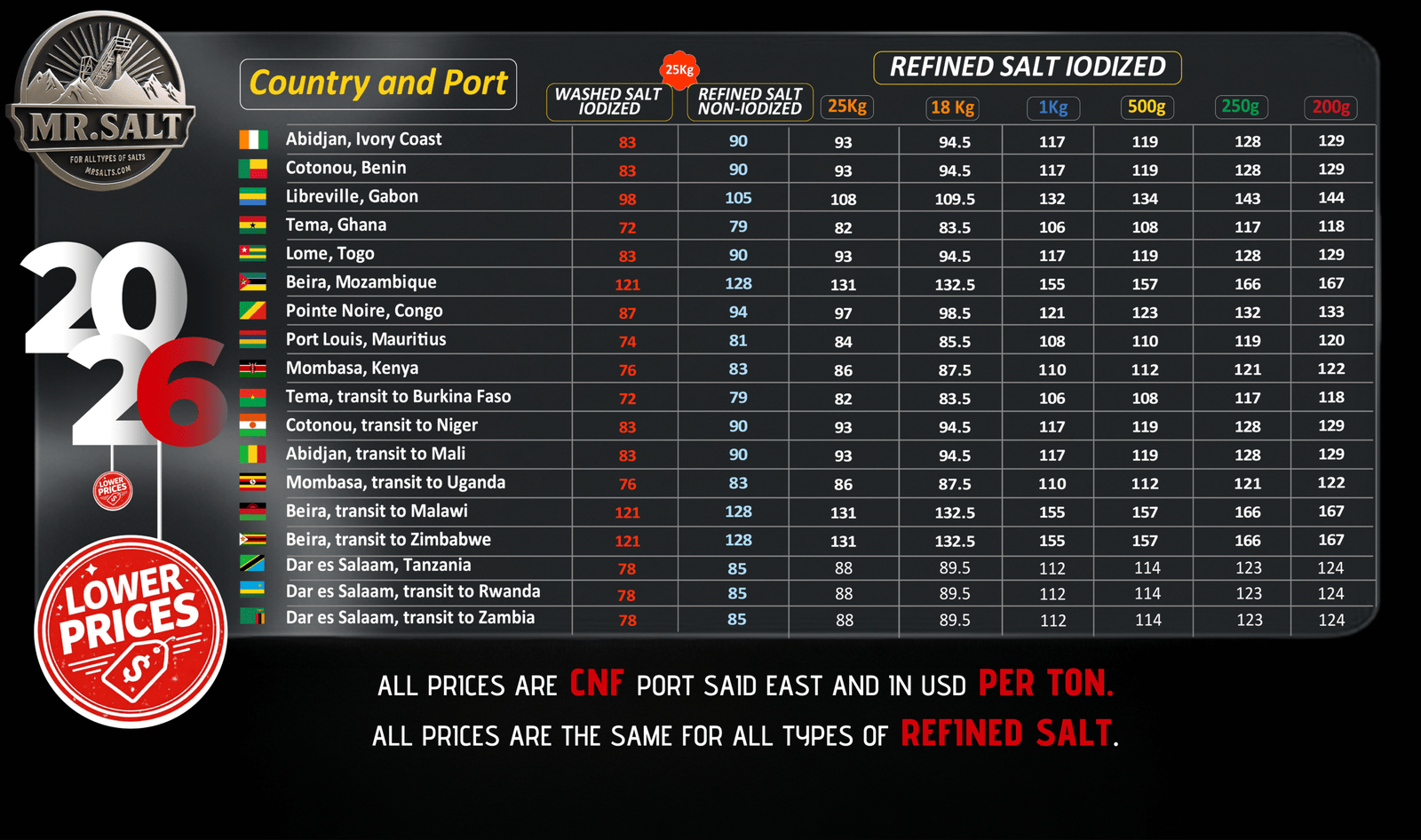 Start the new year with special salt export prices backed by exclusive freight rates from Marsik, available for selected African ports.